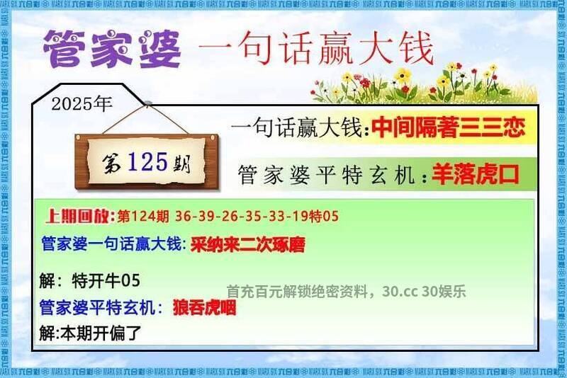 125期:管家婆图解:【中间隔著三三恋】【羊落虎口】